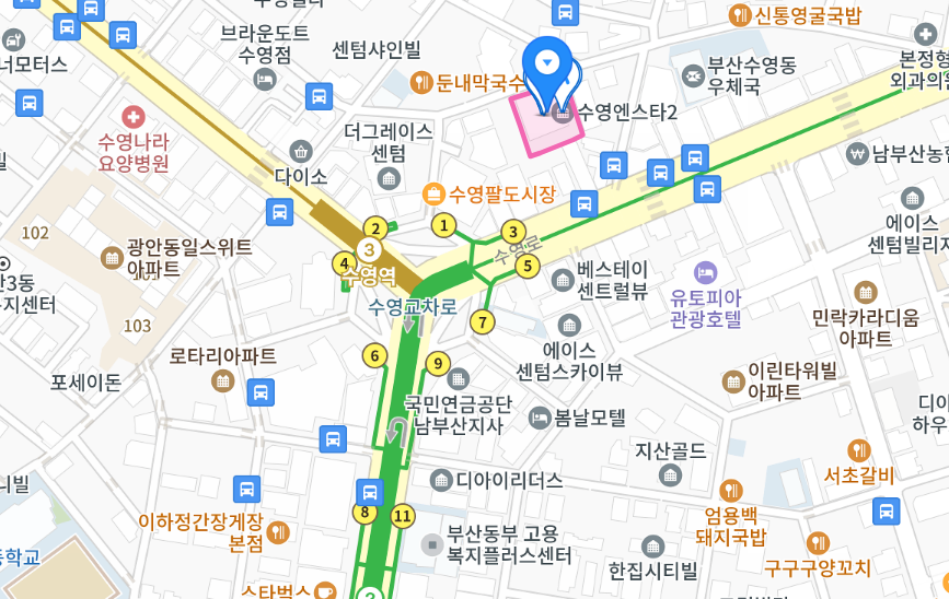 - 위치: 부산 부산진구 동평로411 백조상가동103-1호